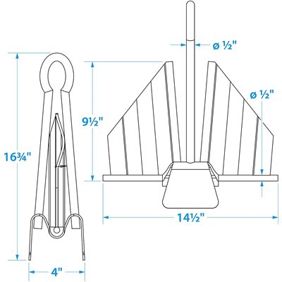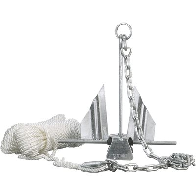 Incluant une ancre galvanisée de 5 lb avec 4 pieds de chaine, 2 manilles et 150 pieds de câblot 3/8 à 3 torons.