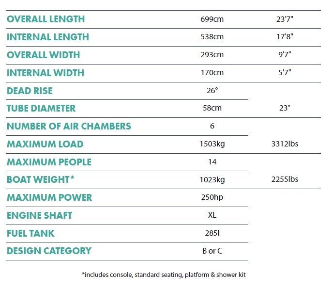 Les angles d'inclinaison de la coque allant de 20 degrés sur les 3 mètres jusqu'à 26 degrés sur les 600 et plus vous donneront l'assurance dans les conditions les plus difficiles, mais les ajouts tels que le teck EVA partout, les réservoirs de carburant intégrés, la superbe sellerie et le bain cousus en diamant les plateformes sur nos plus grands modèles vous permettront de profiter au maximum de chaque journée.