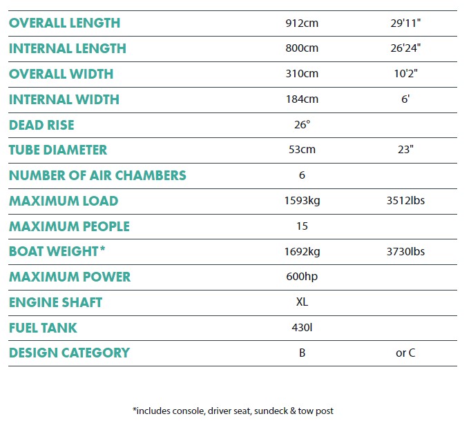 Les angles d'inclinaison de la coque allant de 20 degrés sur les 3 mètres jusqu'à 26 degrés sur les 650 et plus vous donneront l'assurance dans les conditions les plus difficiles, mais les ajouts tels que le teck EVA partout, les réservoirs de carburant intégrés, la superbe sellerie et le bain cousus en diamant les plateformes sur nos plus grands modèles vous permettront de profiter au maximum de chaque journée.