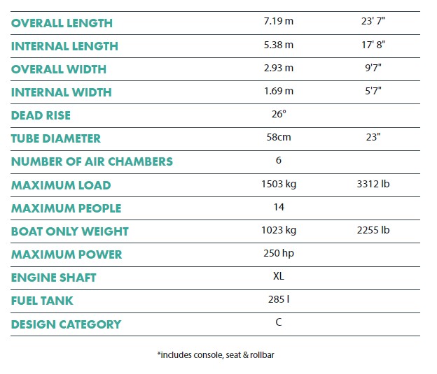 Avec un V très profond, des larges quilles d’angle et des flotteurs de grand diamètre, ces bateaux permettent une grande maniabilité, une grande sécurité et une conduite souple et régulière, même dans les conditions les plus extrêmes.