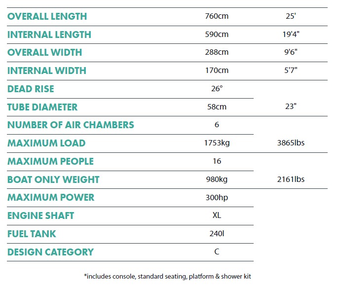 Les angles d'inclinaison de la coque allant de 20 degrés sur les 3 mètres jusqu'à 26 degrés sur les 600 et plus vous donneront l'assurance dans les conditions les plus difficiles, mais les ajouts tels que le teck EVA partout, les réservoirs de carburant intégrés, la superbe sellerie et le bain cousus en diamant les plateformes sur nos plus grands modèles vous permettront de profiter au maximum de chaque journée.