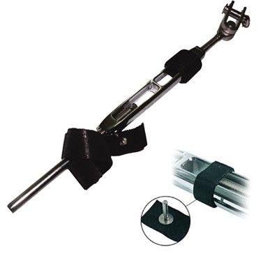 Goupilles de blocage Smart pins pour ridoirs avec courroie en velcro résistant aux UV et à l'eau salée. La goupille s'insère dans le trou de la tige du ridoir pour la bloquer. En paquet de 4.