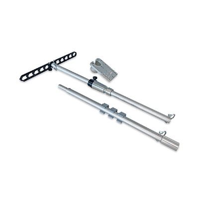 50-inch clear anodized aluminum pole with two sections, one 30 inches and the other 20 inches, and a black anodized aluminum handle that folds and quickly disassembles. The height is adjustable. The main plate, three wire clips, and the probe attachment are included.