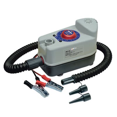 Bravo high speed electric inflator pump for ribs and inflatable boats. Easy to use, reliable and powerful 12 Volt DC electric pump. Inflate to a maximum pressure of 14.5 psi. Inflates and deflates. Comes with a carry bag and adapters. Stops automatically when selected pressure is reached. Includes a 3 meter power cord with alligator clips and 1.70 meter inflation hose. The BP12 has a dial pressure selector and puts out 160 litres per minute. Dimensions: 205x105x130 mm. Consumption max. 20A.