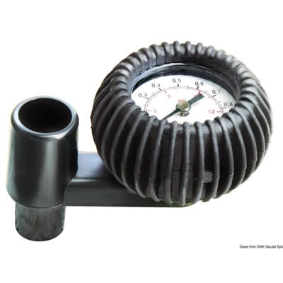 Air pressure gauge for inflatable boat. Pressure in BAR and PSI for greater accuraty. To be used in-line with a pump, it reacts when it inflates or deflates. 0,5 bar (8 PSI)