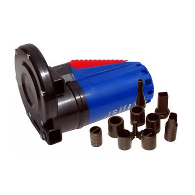 Rule Hi-Speed Inflator/Deflator 12V. Inflates a 4 man dinghy in 1-2 minutes. Supplied with an adaptor for all major inflatable boats. Deflates a dinghy flat and ready to pack. One handed operation. Airflow 550L / Minute. 25 Amps Max.Light weight and simple to use. Adjustable nozzles.