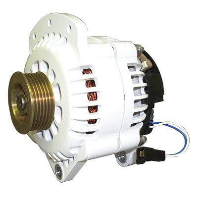 All serie 60 Balmar alternators have the following characteristics: dual internal fan; high output at low speeds; heavy-duty oversized bearing; meet the USCG standard for marine use; white ''powdercoat'' finish; corrosion and spark proof; Smart regulator or external regulators; proved in marine and military use; made in USA with a 1 year warranty; max speed: 10 000 RPM. Type #621 is the most common in North America: one 1'' leg (Motorola Style), with spacer to create one 2'' leg (Delco Style). 100A output. Optional external regulators are sold separately.