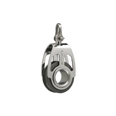 Stainless steel block at an unbeatable price with hollow center for more lightness and more strength since the load is spread on a large area of the sheave and the flanges. Ball bearings, anodized aluminum sheaves with 316 polished stainless steel body and 304 stainless steel fittings. Breaking load is twice the working load. Rope: 3/8''. Working load: 1150 lb. Sheave diam: 1.75''
