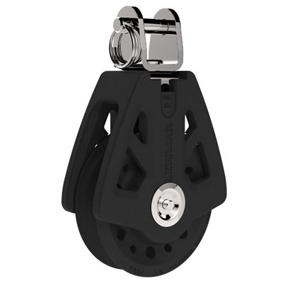 Lewmar Synchro single block. Synchro Blocks are engineered for speed, efficiency and superior handling at a more affordable price. Lewmar uses a combination of scientifically optimized block geometry, a Free-Spin bearing, and a self-aligning head to reduce friction and increase efficiency up to 40% over conventional mainsheet systems. Each component is perfectly synchronized with the movement of the rope, providing an easier, smoother transfer of power from deck to sail and less wear on your rope.