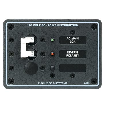 Includes a 30A two-pole breaker with ''On'' indicator light and reverse polarity indicator light. A single breaker and its indicator light can be added.