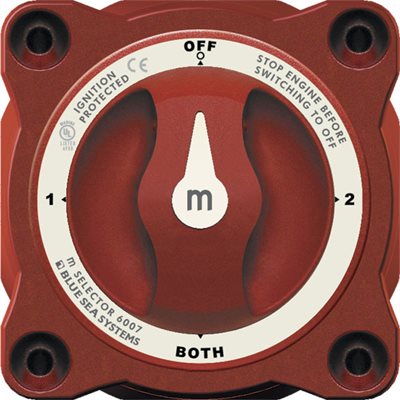 With 4 positions for 1 or 2 batteries plus one OFF position. Rate of 300A in direct current, 700A at start-up. Can be mounted flush or on the surface. Sparkproof. Red.