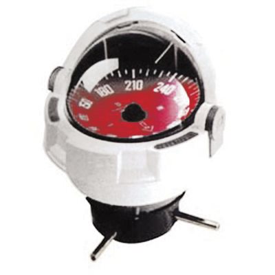 Easy to install pedestal compass, with sun shield, black compass card and compensors. Lighting 12 V. Without housing, white. Dimensions: base: 175mm; height: 203mm with housing (not included). Guaranteed 5 years.