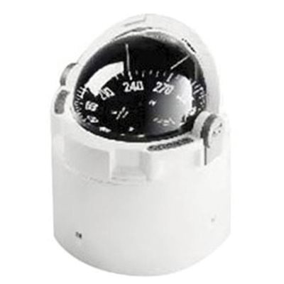 Plastimo's Olympic 135 compass. Binnacle-mount compass easy to install with sunshade, black compass card and balancers. 12V lighting. White cylinder. Dimensions: base 175 mm; height 203 mm. 5 year warranty.