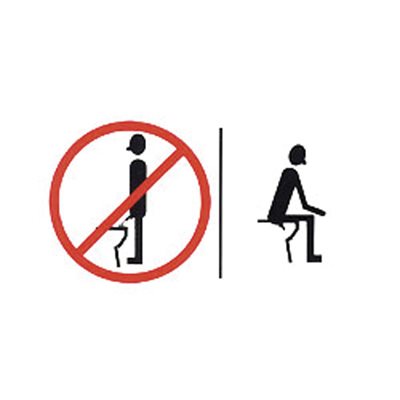 Informative and amusing stickers to use on the interior of toilet seat covers or on the wall. It shows how men should urinate.