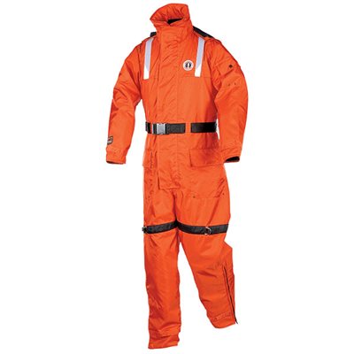 Survival one-piece suit providing a good protection against hypothermia and bad weather while ensuring maximum safety to sea workers. Features leg and ankle straps for best adjustment, reflective strips, insulated hood, large belt. Designed for use in a.