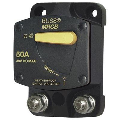 This waterproof circuit breaker/switch is easily installed with 2 screws and is ideal for any instrument requiring an important current such as windlasses, electric winches or inverters. 5/16'' terminals are easily reached. Black. For 50A current.