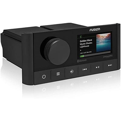 Introducing the new MS-RA210, a compact marine stereo designed to deliver a quality audio entertainment experience out on the water. The MS-RA210 features Fusion's new-look design aesthetics and revolutionary Digital Signal Processing technology for optimized listening in any environment. The sleek design with the option of either mounting the stereo with a conventional flush finish or integrating it flat ensures a visually appealing finish to your dash, making the MS-RA210 a stylish addition to your vessel.Features:New-Look Design Aesthetics: The MS-RA210 features a brilliant 2.7" optically bonded, full-color LCD which is incorporated into a black front face for ease of visibility and enhanced styling. The black front face blends seamlessly with your dash, complementing other electronics and MFDs for a tidy, uniform and elegant installation to provide uniformity across the helm.Digital Signal Processing (DSP): A technically superior listening experience made simple, Fusion's DSP produces superior sound quality in every environment, at every volume level. The power is in the real time optimization and processing of the audio signal matched with the revolutionary technology built into our products. The built-in DSP chip monitors the music playing and adjusts loudness curves for quality audio at every volume level, while the feed-forward limiter anticipates a peak in the audio and adjusts the gain to make distortion, a thing of the past. Using environmental information and acoustically designed Fusion speaker, subwoofer and amplifier profiles, you can enjoy customized, optimized audio in any area on your boat.