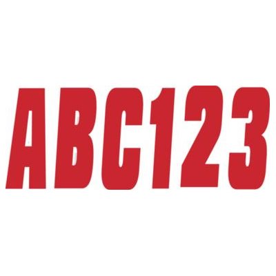 Series 350 Solid Red Factory Matched Registration Number Kit. Solid Red Outline. 3-inch legal size, factory-matched number kit includes 4 sets of the letters A-Z and the numbers 0-9, for a total of 144 decals. UV Coated for protection from the sun and meet the Coast Guard guidelines. Resists fuel, fading, and scratches.