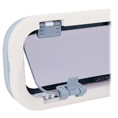 Industry standard, these portholes are designed for the easiest installation and the new handles better clear the field of view. Comes with ivory color interior frame, a fly screen and screw kit. The opening window is made of smoke gray acrylic.