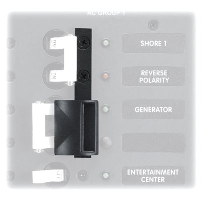 For systems with access to two 120V sources (marina, inverter, generator). A cursor allows the blocking of one of the double breaker while the other one is selected. To be installed on 120V panels.