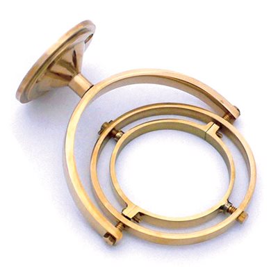 This brass gimbal allows you to mount the brass Yacht Lamp (700) securely to the bulkhead of the boat so that nomatter how rough the seas are they will swing freely and remain upright.
