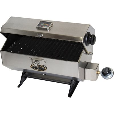 Strong octagonal BBQ in 20-gauge brushed stainless steel. Teak cover handle. To be mounted on the rail or used on a flat surface (Mounting bracket not included). Grill measures 15.5'' x 9''.