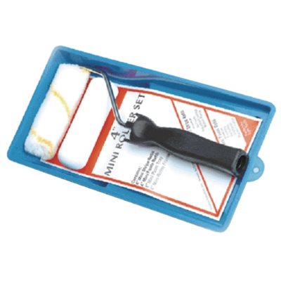 Budget mini plastic tray set. Includes: 4''x 5/8'' foam roller , mini frame, plastic tray.