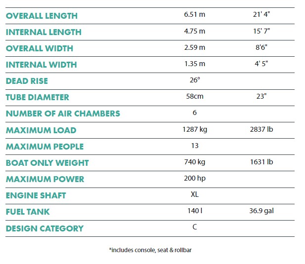 The hull is built from 5083 aluminium plates with 6 and 10mm stringers. With their super deep V, wide chines and large diameter tube, they offer high manoeuvrability, high safety and a soft dry ride even in the roughest conditions.