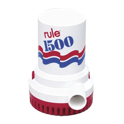 1500 GPH bilge pump, a large flow for a compact size. Made for 1 1/8'' hose. 4.8 A current. Dimensions: 6 x 4 1/4''.