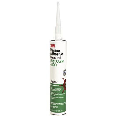 A one-part general purpose polyurethane that chemically reacts with moisture to deliver flexible bonds with good adhesion to wood, fibreglass, gelcoat, certain plastics and metals. Paintable and sandable. Forms watertight, weather-resistant seals on joints and boat hardware above or below the waterline. This product is approximately half the strength of 3M™ Marine Adhesive/Sealant 5200, which allows for disassembly of parts. Note: When very high strength or unremovable bonds are required, use 3M™ Marine Adhesive/Sealant 5200 or 3M™ Marine Adhesive/Sealant Fast Cure 5200. Not recommended for sealing wood decks because it may be permanently softened by certain teak cleaners or sealers. On plastics, test 3M™ Marine Adhesive/Sealant Fast Cure 4200 to determine suitability. 295 ml.