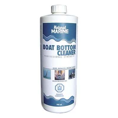 Acid base liquid formula that instantaneously removes algae, debris and other marine residue stuck below the water line.