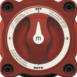 Switches 2 batteries simultaneously while maintaning isolation. The BOTH function offers the ability to combine batteries in the event of a low start battery. Rating: 300A continuously, 600A cranking.