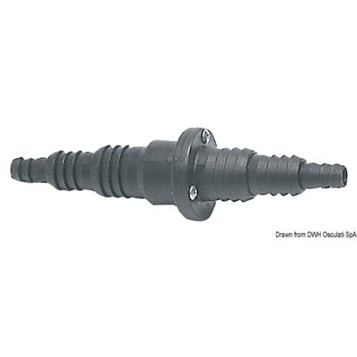 Made of polypropylene with internal rubber flapper; hose adapters 25/32/38mm; multipurpose valve, use to let water flow in just one direction.