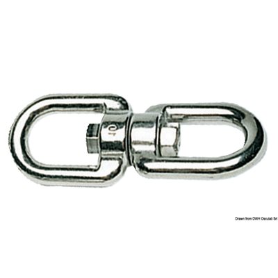 Eye & Eye Swivels link together two parts that have separate rotational directions, reducing knotting or twisting and relieving stress. Large eyes accommodate shackles for chain connections or eye splices with thimbles for anchor rodes. Ideal for anchor and mooring lines. Breaking Load: 1200 Kg.