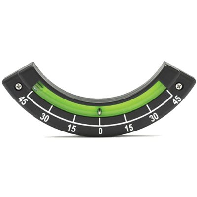 Green background for easy reading. Scale from -45° to 45°. Molded plastic black case.