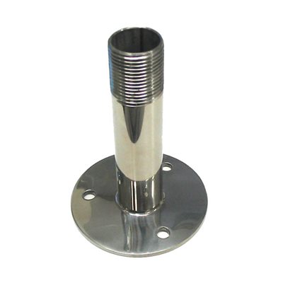 Stainless steel. To mount an antenna on an arch or rooftop. Uses 3 5/16'' screws. Base 2 13/16'', height 4 1/8''. For GPS, VHF or TV. Can also be used as a barbecue bracket.