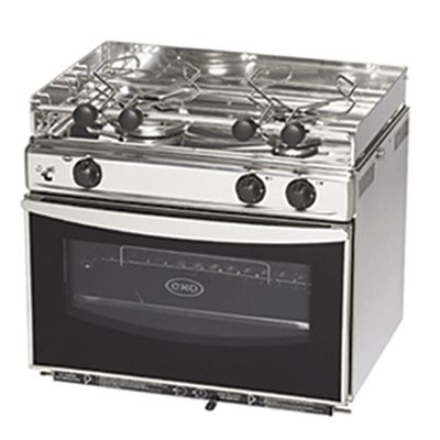 2-Burner & Oven stove. Flame failure cut-off. Glass see-through oven door. Vitreous enameled oven interior. 3 shelf positions in oven. Oven ( 6100 BTU ). Stainless steel sides & top tray. Complete with Gimbal brackets and pan holders. 26 Ltr Oven Volume. Hob burner side panels to prevent splashing. Oven door Lock.