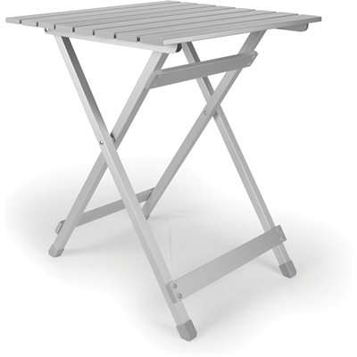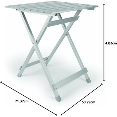 Camco aluminum folding table combines lightweight materials with a durable design. This folding table can support up to 110 lbs. This aluminum folding table is perfect for boating, RVing, camping, tailgating or out on the porch or patio. Table sets up without tools in seconds and folds to only 2" wide for compact storage.