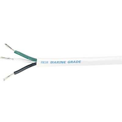 Ancor #16/3 Round tinned Wire. Black, white and green insulated wires, with white jacket. For 120V and 12V circuits. (per foot)