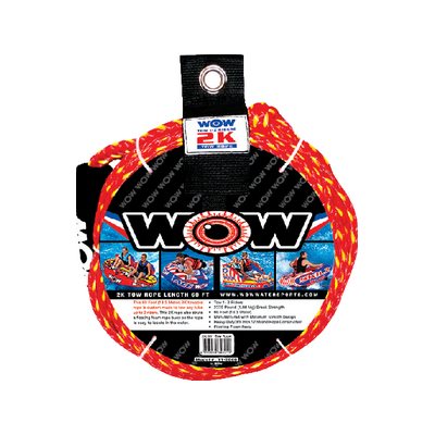 Watersports 2K 60' Tow Rope Towable rope is custom made to tow any tube. Floating foam rope buoy so rope is easy to locate in the water. Manufactured with Minimum Stretch Design. Heavy-Duty 3/8 Inch 12 Strand Rope Construction.