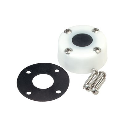 Watertightness is insured by a removable rubber disc, allowing the installation of a wire without removing the connector. Base diameter: 2'' to 2 1/4''. White.