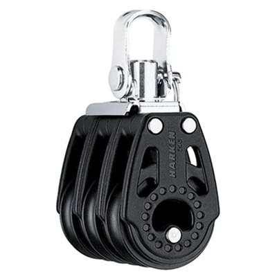 Poulie triple avec émérillon Carbo 29mm. Pour cordage de 5/16''. Charge de travail: 990 lb. Réa en nylon renforcé à longue fibre. Dimension du réa: 1 1/8'' (29mm). Roulements à bille: Plastique renforcé dans une cage de roulement. Cordage max: 5/16''. Finition des joues: Nylon renforcé à longue fibre. Type d'émérillon: Acier en inox.