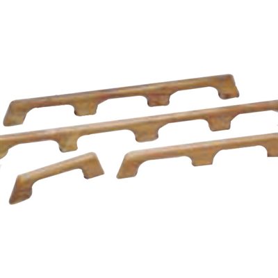 En teck massif. Distance entre fixations: 10". Longueur 33", hauteur 2 3/8", largeur 1 1/16".