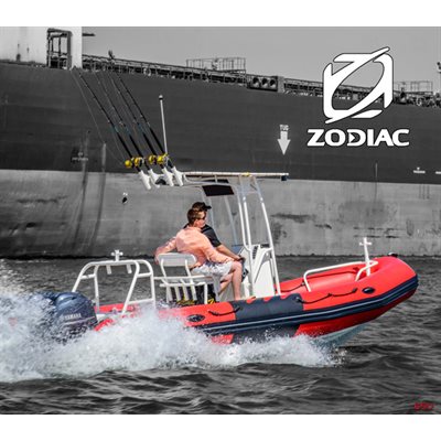 Le Zodiac Recpro 650 est une embarcation "multi-segments" extrêmement versatile autant pour les plaisanciers, pêcheurs et amateurs de sports nautique que pour les utilisateurs commerciaux tel que les premiers répondants ou embarcations de sécurité. Le Zodiac Recpro n'est pas seulement destiné aux besoin des plaisanciers mais aussi pour les professionnels de la mer tel que les unités de recherche et sauvetage, Garde-Côtière auxiliaire ou encore les organismes oeuvrant en environnement et la recherche. Un des points majeurs du RecPro 650 est le toit "T-Top" avec ses quatres support à cannes, le tout monté sur le pont pour une résistance accrue et une stabilité sans pareil. Le nouveau design de la console alloue un espace supérieur pour les instruments de navigation. Le bateau est équipé d'un balcon avant intégré à même la coque avec une bitte de remorquage amovible ainsi qu'une arche arrière à bas profile équipée aussi d'une bitte de remorquage avec taquets et 2 supports à canne à pêche. Toute la tubulure, arche et balcon et console sont traitées avec de la peinture à poudre cuite ce qui les protège pour de nombreuses années. Le Zodiac RecPro 650 vient de série avec l'équipement suivant: feux de navigation et feux de ponts, 2 prises 12 volts et une pompe de cale. La console comprend un siège à l'avant et le capitaine est aux commandes assis sur le banc "bolster" qui comprend une main courante, un dossier and 5 support à cannes. Ce bateau vient avec un lecteur de carte & profondimètre Garmin, une radio VHF de haute qualité, un système de son à 4 hauts-parleurs ainsi que 2 écrans digitaux Yamaha.